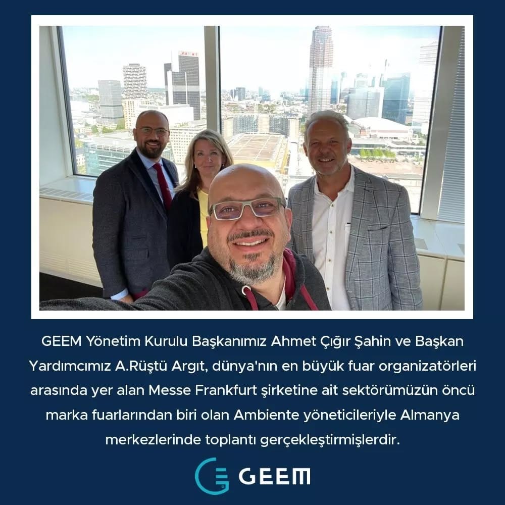 Gökhan Gürkan Haber 05 May 2022 Aralık 19, 2024 Geem, Ambiente yöneticileriyle Almanya Merkezlerinde Toplantı Gerçekleştirdi GEEM Yönetim Kurulu Başkanımız Ahmet Çığır Şahin ve Başkan Yardımcımız A.Rüştü Argıt, dünya'nın en büyük fuar organizatörleri arasında ... Continue reading